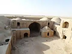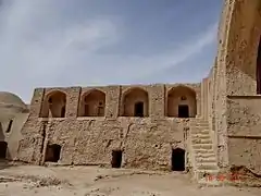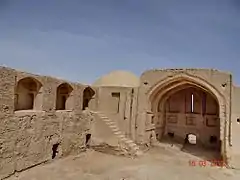 این قلعه مقر و کاخ خاندان رئیسی (ملک محمد رئیسی) فرمانروایان جنوبی سیستان میباشد که از خشت و گل ساخته شدهاست. ارتفاع ایوان شمالی این قلعه از زمین ۱۰ متر و دهانه آن ۵/۷ متر پهنا دارد. در این منطقه باقی مانده یک آسیاب بادی نیز وجود دارد که نمونههای آن در دوران اسلامی و در تمام نقاط سیستان وجود داشتهاست. این ساختمان رادر زمان صفویّه شاهان کیانی سیستان ساختهاند ودر احیاءالملوک هم دکتر ستوده آن را قلعهٔ کافی نامیدهاست. است. در این منطقه کتیبهای از سال ۱۱۳۰ هجری قمری (۱۷۱۷ میلادی) مربوط به میرجعفرخان کشف شدهاست.