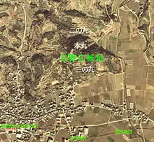 باقیمانده خرابههای قلعه در جایی که به رنگ سبز نوشته شده است