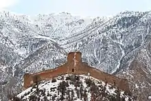 بیشتر قسمتهای آن در طی زمان از میان رفته و در حال حاضر نمای بیرونی آن شامل دو باروی عظیم به شکل دو بازوی گشاده میباشد. نوع معماری آن طوری است که مانع ورود غریبهها و مهاجمین به داخل میشد و تنها مسیر ورودی به این کوه کله قندی پر شیب را مسدود میکرد.