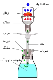 - سرقلیان، آتشدان؛ محل قرارگیری تنباکو و زغال.
