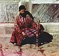 مردی نشسته با قلیان. گرفته شده بین سالهای ۱۹۰۵ تا ۱۹۱۵