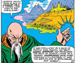 قمر تاج مکانی مخفی است که در ارتفاعات هیمالیا قرار دارد و خانه مربی دکتر استرنج، انشنت وان است. پانصد سال پیش، انشنت وان در همین محل به دنیا آمد و با کمک دوستش، کالوو، قدرت جادوی باستانی را کشف کرد اما آن دو بر سر نحوه استفاده از آن اختلاف داشتند، در حالی که انشنت وان تمایل به استفاده از این توانایی جدید برای کمک به مردم و تبدیل روستایش به یک آرمانشهر بود، کالوو تنها به قدرت آن، و فتح روستاهای اطراف فکر میکرد. آن دو با جادو مریضی و پیری را از قمر تاج دور کردند اما کالوو با تسخیر کردن ذهن روستاییان، خودش را پادشاه کرد. در نبردی که بین انشنت وان و کالوو درگرفت، این روستا با خاک یکسان شد. کالوو به مکان دیگری تبعید و انشنت وان خانه به دوش شد.