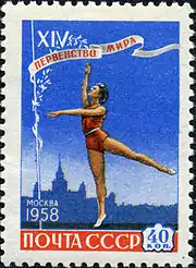تمبر یادبود قهرمانی ژیمناستیک هنری جهان ۱۹۵۸ شوروی