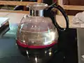 قهوهٔ فیلترشده را که موجود در مخزن پایینی است، سِرو میکنند.