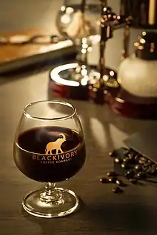 قهوه عاج سیاه (انگلیسی: Black Ivory Coffee) یک برند قهوه است که توسط کمپانی قهوه عاج سیاه با مسئولیت محدود در شمال تایلند تهیه شدهاست. قهوه عاج سیاه از دانههای قهوه عربیکا تولید میشود. دانههای قهوه ابتدا توسط فیلها مصرف شده و سپس از مدفوع آنها جمعآوری و فراوری میشود.[1][2] طعم قهوه عاج سیاه تحت تأثیر آنزیمهای هضم کننده موجود در سیستم گوارشی فیل است که پروتئین قهوه را تجزیه میکند[2] و همچنین، طعم آن تحت تأثیر فرایند تخمیر طبیعی در معده فیلها نیز قرار میگیرد. دانههای قهوه در طی ۱۵ تا ۷۰ ساعت با مواد مختلف دیگری که در معده فیل وجود دارد هضم میشوند. این فرایند باعث به وجود آوردن طعم خاصی در محصول نهایی میشود.[3]