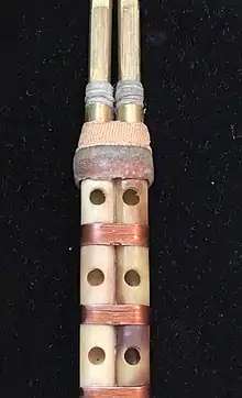 جنس اصلی این ساز از استخوان بال عقاب ، قوش یا پرندگان شکاری درشت جثه میباشد (استخوان کرکس به علت بزرگی بیش از حد برای این کار مناسب نیست). عده ای نیز با استخوان درنا این ساز را میسازند. بدین شکل که استخوان سر بال جسد تلف شده ی حیوان را که جدا کرده و بعد از پرداخت و آماده سازی ، سوراخ میکنند و دو استخوان را با چسب یا موم و عسل به هم میچسبانند و با سیم مسی فاصله ی بین سوراخ ها را تزیین میکنند. عده ای از سازگر ها معتقدند استفاده از چسب زنگ صدای ساز را میگیرد و مناسب نیست.