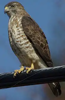 - مشارکتکنندگان ویکیپدیا. «Broad-winged hawk». در دانشنامهٔ ویکیپدیای انگلیسی، بازبینیشده در ۱۶ سپتامبر ۲۰۱۸.