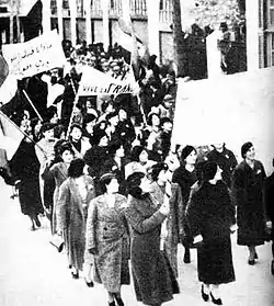 تظاهرات بانوان در دمشق به دلیل جدا شدن سنجاق اسکندرون از سوریه و الحاق آن به ترکیه در سال ۱۹۳۹.