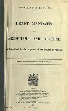 ![]() پیش نویس دستورات برای میانرودان و فلسطین جهت تأیید جامعه ملل در ۷ دسامبر ۱۹۲۰ ارائه شد. | |