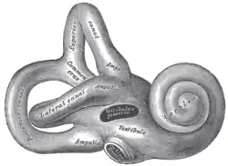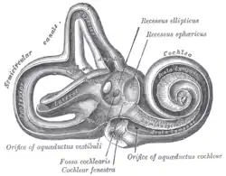 پیچال[1] یا لابیرنت استخوانی گوش حاوی سه بخش است: دهلیز، مجاری نیم دایرهای و حلزون. این حفرات در نسج استخوان متراکم قرار دارند. آنها با دروناُست (آندوستئوم) مفروش شدهاند و حاوی یک مایع شفاف موسوم به پیراتنابه (پریلنف) هستند که در آن لابیرنت غشایی معلق میباشد.