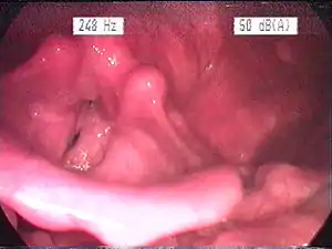 | تصویر آندوسکپی از حنجرهای که به دلیل برگشت اسید معده ملتهب شدهاست. | |