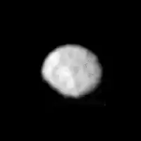 - The mass estimate is based on the assumed density of 1.2 g/cm³, and a volume of 3.5 ×۱۰۶ km³ obtained from a detailed shape model in Stooke (1994).[5]