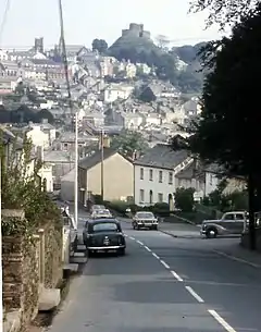 ![]() Town centre from Saint Stephen's Hill showing the prominent Launceston Castle | |