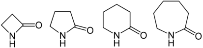 از راست به چپ: اپسیلون لاکتام؛ دلتا لاکتام؛ گاما لاکتام؛ بتا لاکتام