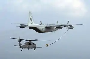 | USAF HC-130P Combat King of the 920th Rescue Wing refuels an سیکورسکی اچاچ-۶۰ پیو هاوک helicopter | |