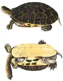 - مشارکتکنندگان ویکیپدیا. «Chicken turtle». در دانشنامهٔ ویکیپدیای انگلیسی، بازبینیشده در ۱۳ آوریل ۲۰۱۷.