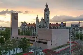 ![]() ![]() ![]() ![]() ![]() From top: Skyline of Leipzig centre, Monument to the Battle of the Nations at night, Federal Administrative Court of Germany, New Town Hall, City-Hochhaus Leipzig and the Augusteum of the دانشگاه لایپزیگ | |