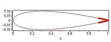 برش عرضی از یک سطح آیرودینامیک. بخش سرخرنگ لبهٔ فرار است.