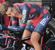 ![]() Warbasse warming up at the 2013 Critérium du Dauphiné | |