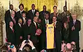 تیم لیکرز در ضیافتی در کاخ سفید با اوباما، پس از قهرمانی فصل ۲۰۰۸-۲۰۰۹ در لیگ ان بی ای