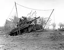 یک تانک متعلق به لشکر دوم زرهی که انتهای آن در حفرهای قرار گرفته تا مسافت بیشتری را شلیک کند. آرل دسامبر ۱۹۴۴.