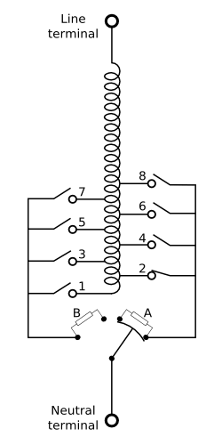 سیم پیچهای قابل تغییر در ترانس از دو بخش جداگانه تشکیل شدهاند، یک بخش سیم پیچ اصلی است و بخش دیگر سیم پیچ آراستار ولتاژ (Voltage regultor). شیوه اتصال سیم پیچ بنیادی و سیم پیچ آراستار به سه روش زیر انجام میگردد: