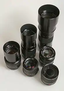 لنزهای اضافه شونده – بعضی لنزها در قسمت جلو دارای رزوهٔ فیلتر میباشند که میتوان یک عدسی یا لنز کمکی لنز واید یا لنز تله فوتو را همانند یک فیلتر روی لنز استاندارد بست. در واقع لنز توسط مانت اصلی بر روی بدنه اصلی قرار نمیگیرد.