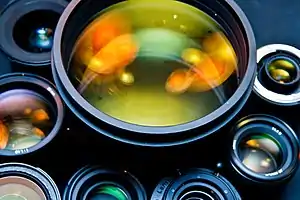 لنز (به انگلیسی: ) استوانهای حاوی مجموعهای از عدسیها است که نور را از خود عبور داده و به درون دوربین هدایت میکند و باعث میشود که تصویر به صورت واضح بر روی فیلم عکاسی یا گیرنده تصویر منعکس شود.[1][2] کیفیت عکس، بیشتر به لنز بستگی دارد تا دوربین. لنز دوربینهای کامپکت قابل تعویض نیستند، همچنین لنز برخی دوربینهای ارزانقیمت را نیز نمیتوان جدا کرد، اما لنز دوربینهای تکلنزی بازتابی (SLR) و بعضی دوربینهای تک لنزی غیر بازتابی (سری کانتاکس) و دو لنزی غیر بازتابی (سری مامیا) قابل تعویضاند؛ عکاسان حرفهای معمولاً چندین لنز با فواصل کانونی متفاوت، که بسته به شرایط موضوع بر روی دوربین نصب میشود، استفاده میکنند. در دوربین دیجیتال با هربار عوض کردن لنز، مقداری غبار وارد بدنهٔ دوربین میشود و روی سنسور مینشیند. این مسئله در درازمدت کیفیت تصاویر را کاهش میدهد، بنابراین در تعویض لنز باید احتیاط کرد. همچنین هر لنزی را نمیتوان به هر دوربینی وصل کرد، زیرا پایههای کنترلی لنز که برای برقراری ارتباط با سیستم الکترونیکی دوربین بکار میروند و همچنین محل اتصال فیزیکی لنز با دوربین، در دوربینها و مدلهای مختلف تفاوت دارند.[3]