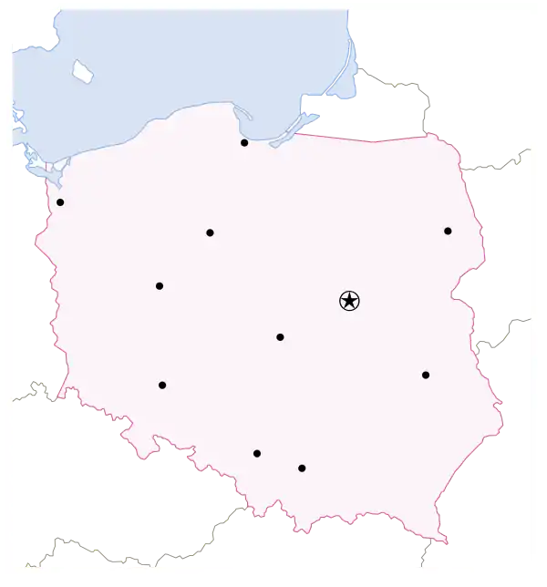 | پایتخت و بزرگترین شهر | کرکوس-ورشو ۵۲°۱۳′ شمالی ۲۱°۰۲′ شرقی |