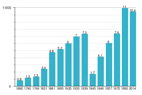 | • تراکم | ۸۱۰/کیلومتر مربع (۲۱۰۰/مایل مربع) |