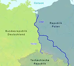 این رودخانه پس از پیمودن یک مسافت ۵۴ کیلومتری در داخل سرزمینهای جمهوری چک، به مرز مشترک سه کشور چک، لهستان و آلمان میرسد. سپس این رودخانه ۱۹۸ کیلومتر دیگر ادامه مییابد تا سرانجام به رودخانه اودر بپیوندد. این ۱۹۸ کیلومتر، بخشی از مرز اودر-نایسه میباشد.