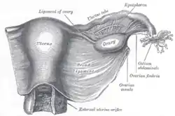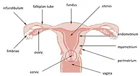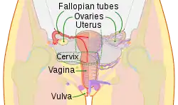 ![]() نمای قدامی دستگاه تناسلی زنانه | |