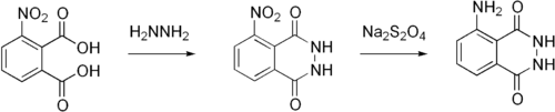 از واکنش ۳- نیتروفتالیک اسید با هیدرازین و تولید ۳-نیتروفتالهیدرازید و کاهش آن با استفاده از عوامل کاهنده ای چون سدیم دی تیونیت ۳- آمینوفتالهیدرازید (لومینول) تولید می شود.