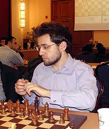 ![]() لوون آرونیان در جریان مسابقات قهرمانی شطرنج تیمی اروپا در آتن (۶ نوامبر ۲۰۱۱) | |