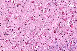 ![]() عکاسی ریزنگاری showing the locus coeruleus. HE-LFB stain. | |
