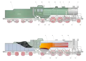 قسمتهای اصلی لوکوموتیو بخار.