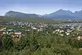 ![]() View of Leknes in winter (Bulitinden and Guratinden mountains in background) | |