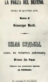 صفحه نخست از اپرانامه «نیروی سرنوشت» جوزپه وردی