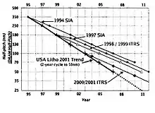 لیتوگرافی به وسیله اشعه ماوراء بنفش حد بالایی EUVL/Extreme Ultraviolet Lithography یکی از روشهای تصویرگیری پرتوافکنی است (شکل ۱و۲) که از اشعهای با طول موج بین ۱۳٫۴ تا nm ۱۳٫۵ استفاده میکند. اصول اولیه کارکرد EUVL شبیه به روش لیتوگرافی نوری است، با یک سیستم و ماسک که موج را تابانده و متمرکز میکند. لیتوگرافی پرتوافکنی نوری بیش از ۲۰ سال از اصلیترین راههای تولید قطعات نیمه هادی بودهاست. از مدتها قبل پیشبینی شده بود که لیتوگرافی پرتوافکنی نوری، ظرفیت تولید قطعات با هزینه اقتصادی مناسب و اندازه ویژگی (Feature size) کم همراه با تولید کنترل شده مدارهای مجتمع را دارد. پیچیدگی لیتوگرافی نوری، بهطور خاص مربوط به ساخت ماسک میشود. نقشه بینالمللی فناوری برای نیمه هادیها (ITRS/International Technology Roadmap for Semiconductors) پیشبینی میکند که احتمالا یک نمونه لیتوگرافی برای ساخت الگویی با نیم گام nm45 نیاز است. شکل ۳ نمایشی از نیم گام پیشبینی شده با زمان برای چهار مدل از ITRS. هرکدام از این مدلهای ITRS یک شتاب کاهشی در نیم گام را پیشبینی کردهاند. نامزد پیشرو و موفق در لیتوگرافی پرتوافکنی نوری، لیتوگرافی ماوراءبنفش حد بالایی (EUVL) و لیتوگرافی پرتوافکنی الکترونی (EPL/Electron Projection Lithography) هستند.