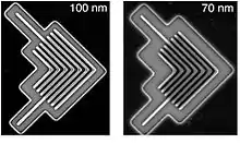 در حالتی که ماده مقاوم منفی است پس از انجام لیتوگرافی الگوی ایجاد شده روی زیرلایه برعکس الگوی ماسک خواهد بود؛ و در حالتی که ماده مقاوم مثبت باشد پس از انجام لیتوگرافی الگوی ایجاد شده روی زیرلایه مشابه الگوی ماسک خواهد بود (شکلهای ۵ و ۶(