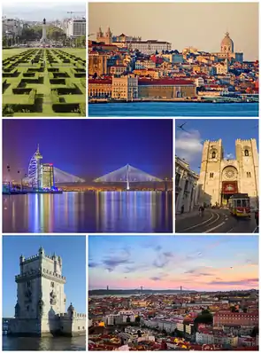 ![]() Clockwise, from top: Praça do Comércio, Parque Eduardo VII, Padrão dos Descobrimentos، برج بلم، the کلیسای جامع لیسبون، and Parque das Nações. | |||