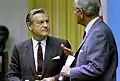 در حال صحبت با نلسون راکفلر، سرمایه دار بزرگ آمریکایی