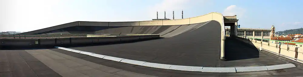 نمای کارخانه لینگاتو فیات و پیست آزمایش روی سقف در ۱۹۲۸