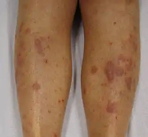 | Lichen planus affecting the shins. | |