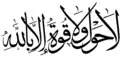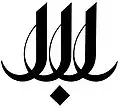 نشان رسمی جمهوری اسلامی ایران (☫)، لیگاتوری از عبارت "لا اله الّا الله" است.