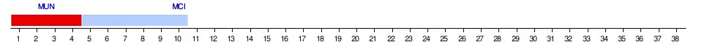 | 2 | منچستر یونایتد | 38 | 25 | 6 | 7 | 68 | 28 | +40 | 81 | |