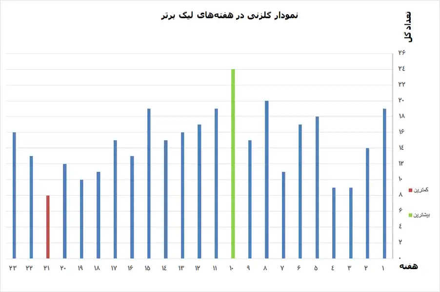 گلزنی تیمها در هر هفته از مسابقات