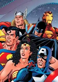- مشارکتکنندگان ویکیپدیا. «JLA/Avengers». در دانشنامهٔ ویکیپدیای انگلیسی، بازبینیشده در ۱۲ نوامبر ۲۰۱۹.