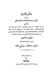 - مشارکتکنندگان ویکیپدیا. «Ma'asir al-umara». در دانشنامهٔ ویکیپدیای انگلیسی، بازبینیشده در ۱۴ آوریل ۲۰۱۸.