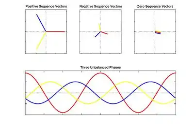 بنابراین ولتاژ سه فاز را میتوان بر حسب مؤلفههای مثبت، منفی و صفر به صورت زیر نوشت: